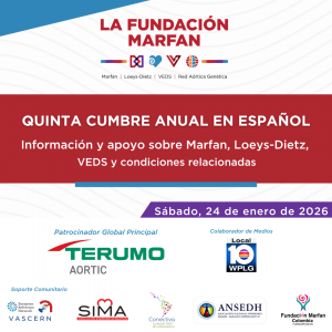 Representantes de ANSEDH asistieron el pasado sábado 24 de enero a la 5ª Cumbre de la Fundación Marfan en español, un evento online internacional dirigido a pacientes, cuidadores y profesionales, centrado a los síndromes de Marfan (SMF), Loeys-Dietz (SLD) y Ehlers-Danlos vascular (SEDv). Os contamos los principales hallazgos de investigación, avances en diagnóstico y tratamiento, y experiencias sobre el acceso a la atención sanitaria en distintos países de habla hispana.