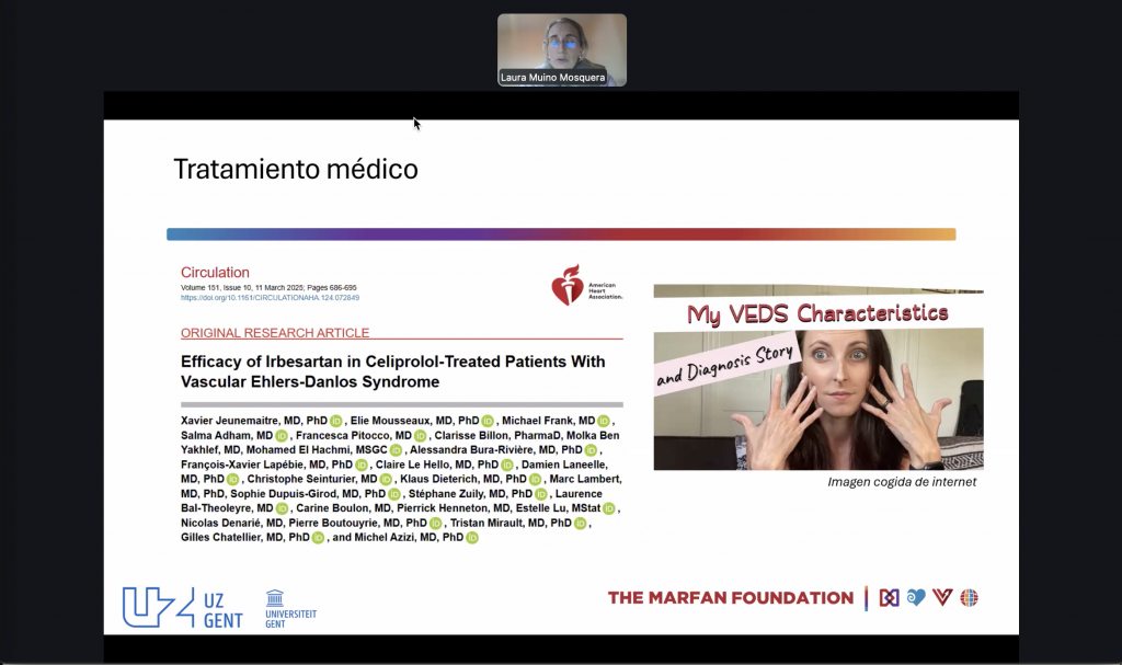 Como retos de la asistencia sanitaria en este país, la Dra. María Elena Soto López, internista y reumatóloga del Instituto Nacional de Cardiología Ignacio Chávez, destacó la dificultad diagnóstica (“la enfermedad que no se sospecha, no se diagnostica”) y la necesidad de mayor formación profesional y un mejor acceso a pruebas genéticas. Se hizo un repaso exhaustivo de los fenotipos de SMF, SLD y SEDv, su sintomatología multisistémica, sus comorbilidades, posibles dianas terapéuticas y recomendaciones de estilo de vida.