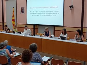Las representantes de ANSEDH Eva Collado, vicepresidenta, y Beatriz García, soporte de la delegación de Catalunya, han participado activamente en la elaboración del documento de propuestas y en su presentación ante la Consellera de Salud, Hble. Dra. Olga Pané, la Secretaria de Atención Sanitaria y Participación, Dra. Gloria Gálvez, el CCPC y profesionales sanitarios y de la administración.