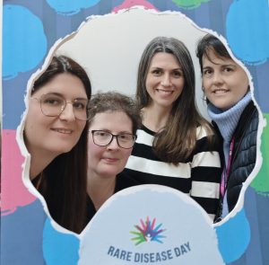Representación de ANSEDH en el acto. De izquierda a derecha: Beatriz García, soporte de la delegación de Catalunya; Kàrol Fitor, socia; Eva Collado, vicepresidenta; y Eva, socia.
