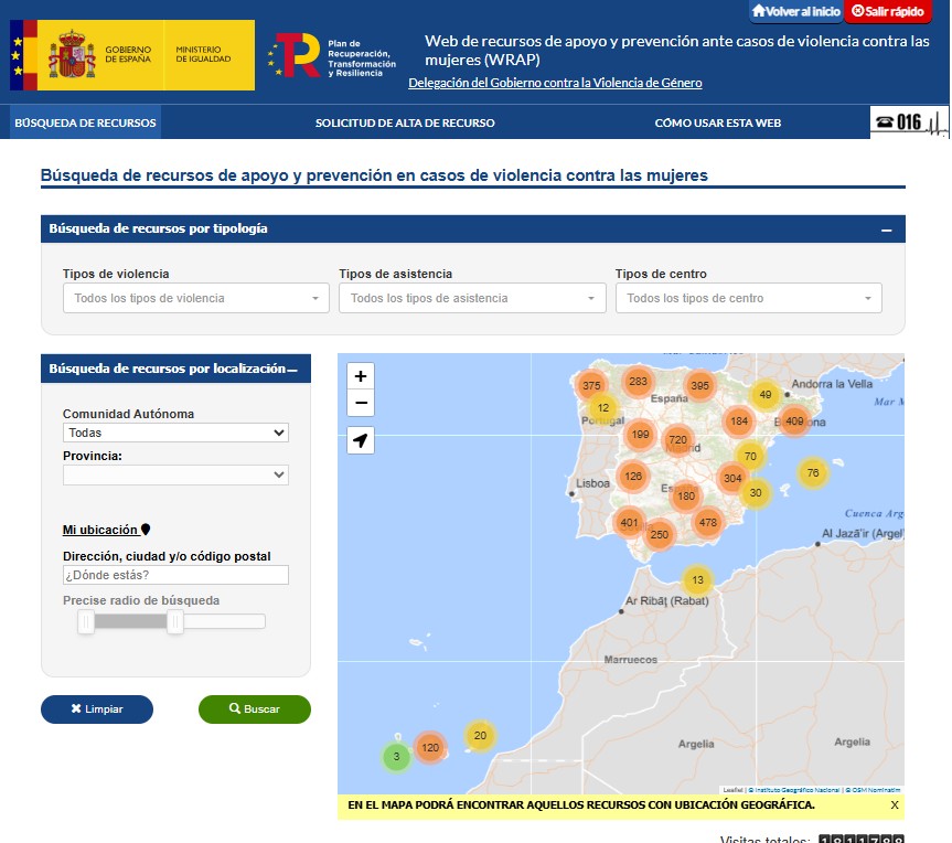 https://www.igualdad.gob.es/accede-a-lineas-telefonicas-especializadas-para-atencion-apoyo-y-proteccion-en-casos-de-violencia-de-genero-lgtbifobia-o-discriminacion-racial/ - Mapa de recursos y centros de atención a las mujeres